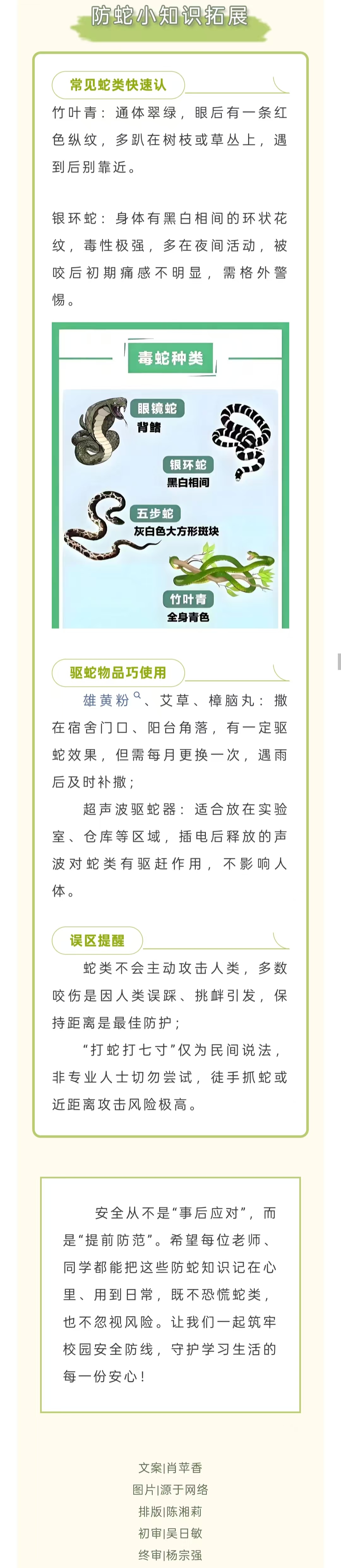 高温多雨蛇类活跃,这份校园防蛇指南请收好!