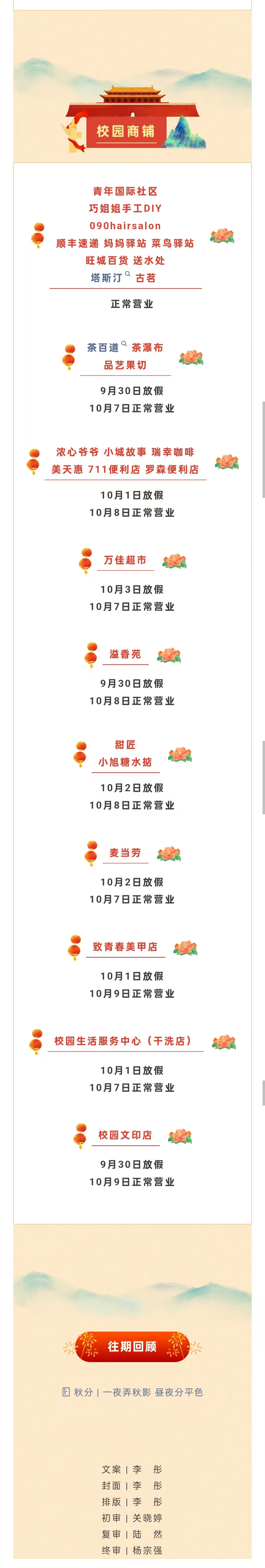 迎国庆贺中秋 | 华南农业大学珠江学院国庆暨中秋假期食堂商铺放假通知