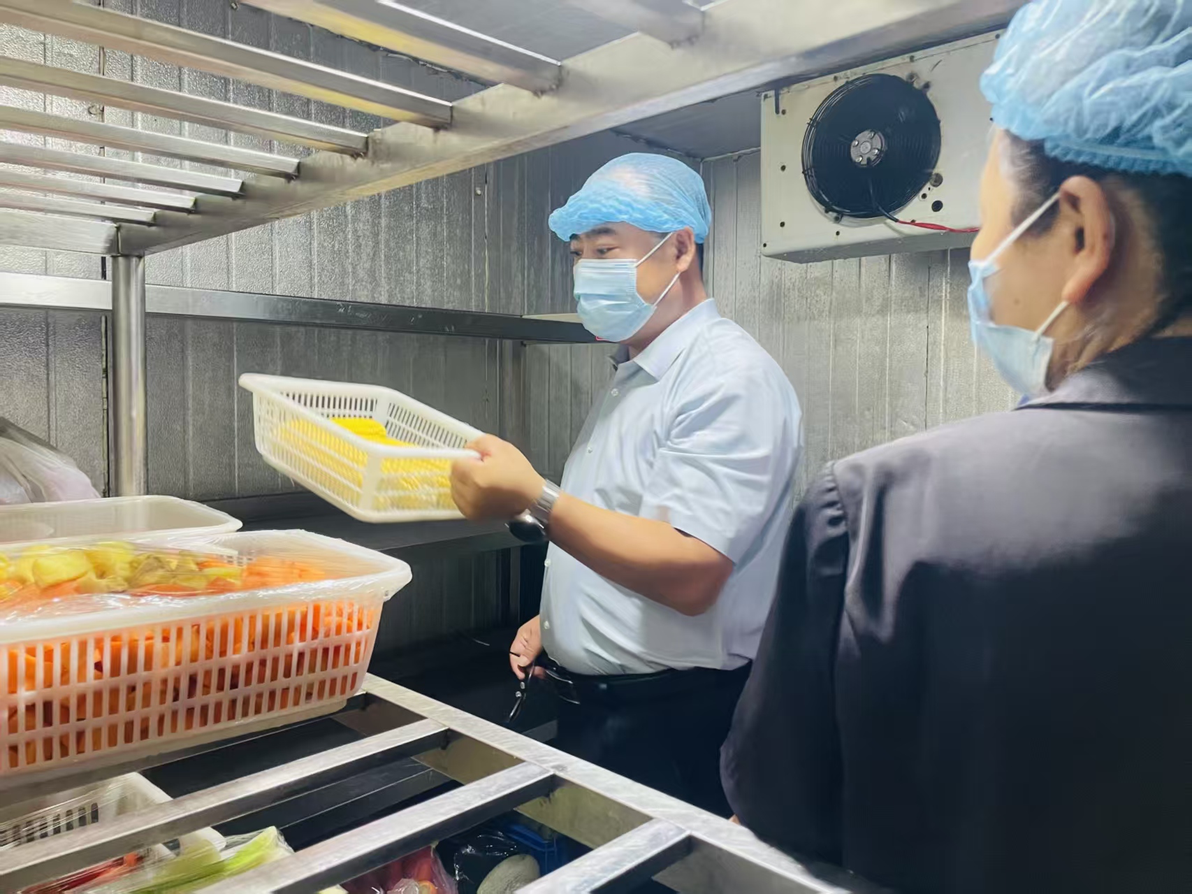 民以食为天,食以安为先。食堂食品安全是本次检查的重点环节。检查组深入食堂后厨,对食品原料的采购与储存、加工制作流程、餐具清洗消毒、食品留样管理等关键环节进行了细致入微的检查。赵春辉副校长在检查中反复强调,必须严格履行食品安全主体责任,从源头把控,严把原料准入关和加工制作关,确保每一餐都安全、卫生、营养,让假期留校师生吃得放心、吃得安心